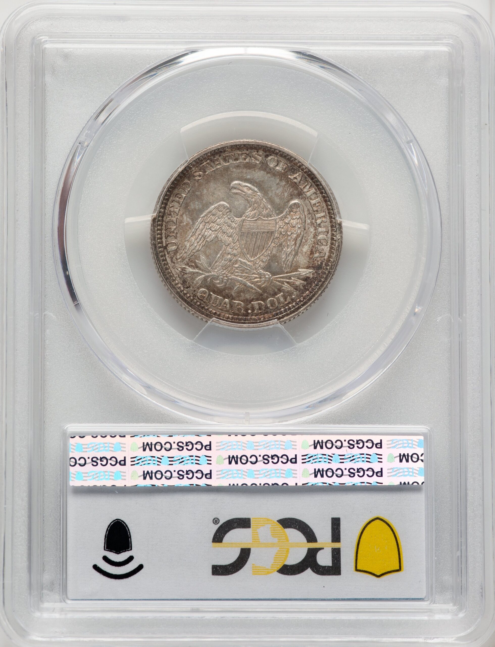 This 1862 25C Seated Quarter has been certified and graded by PCGS as MS65.PCGS’s encapsulation guarantees the coins MS65 Condition.