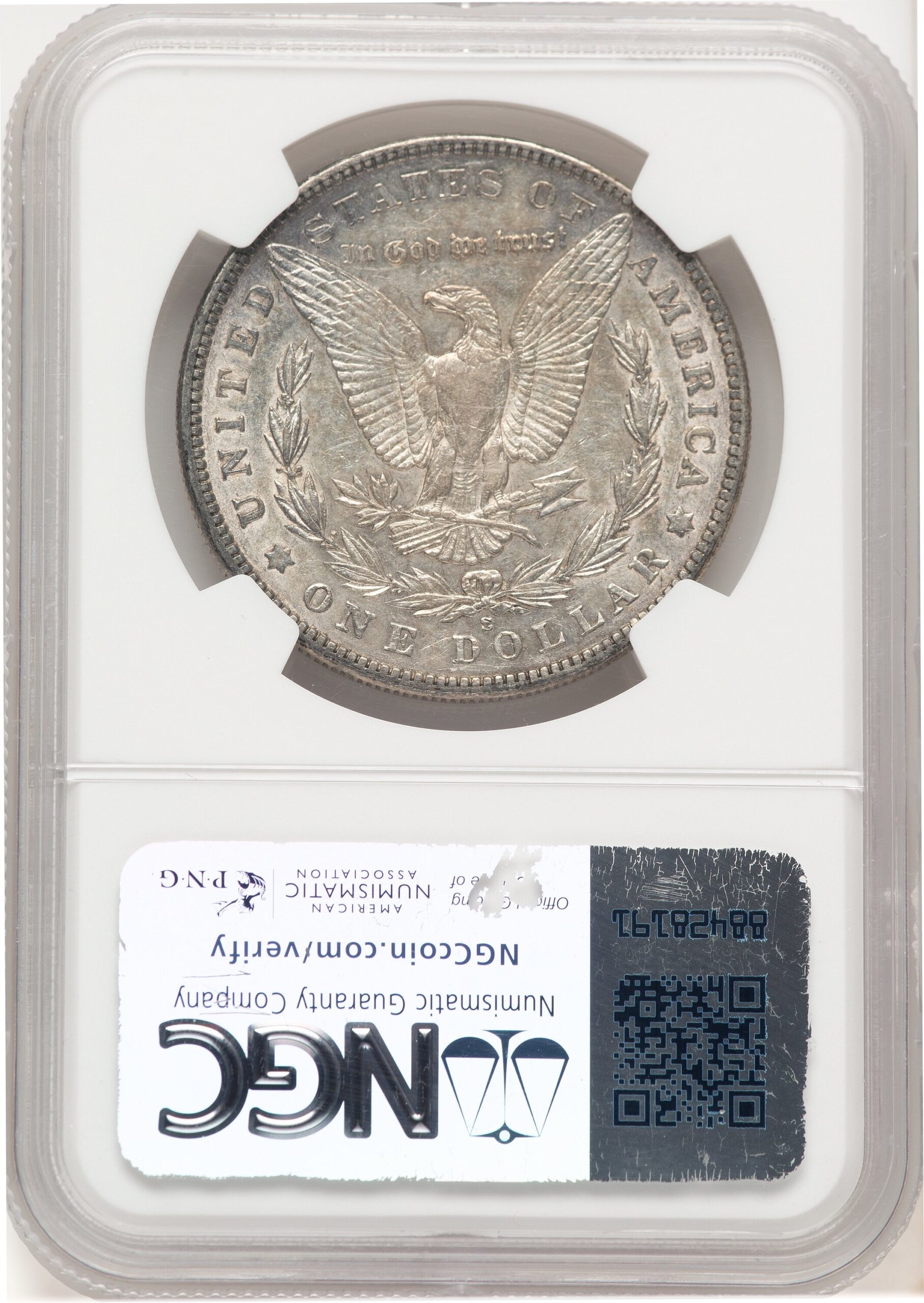 This 1904-S Morgan Dollar has been certified and graded by NGC as AU50. The Morgan Silver Dollar is named after its designer George T. Morgan and was minted from 1878 to 1904 and again 1921. These iconic silver coins continue to be one of the most popular coins to collect in the United States.