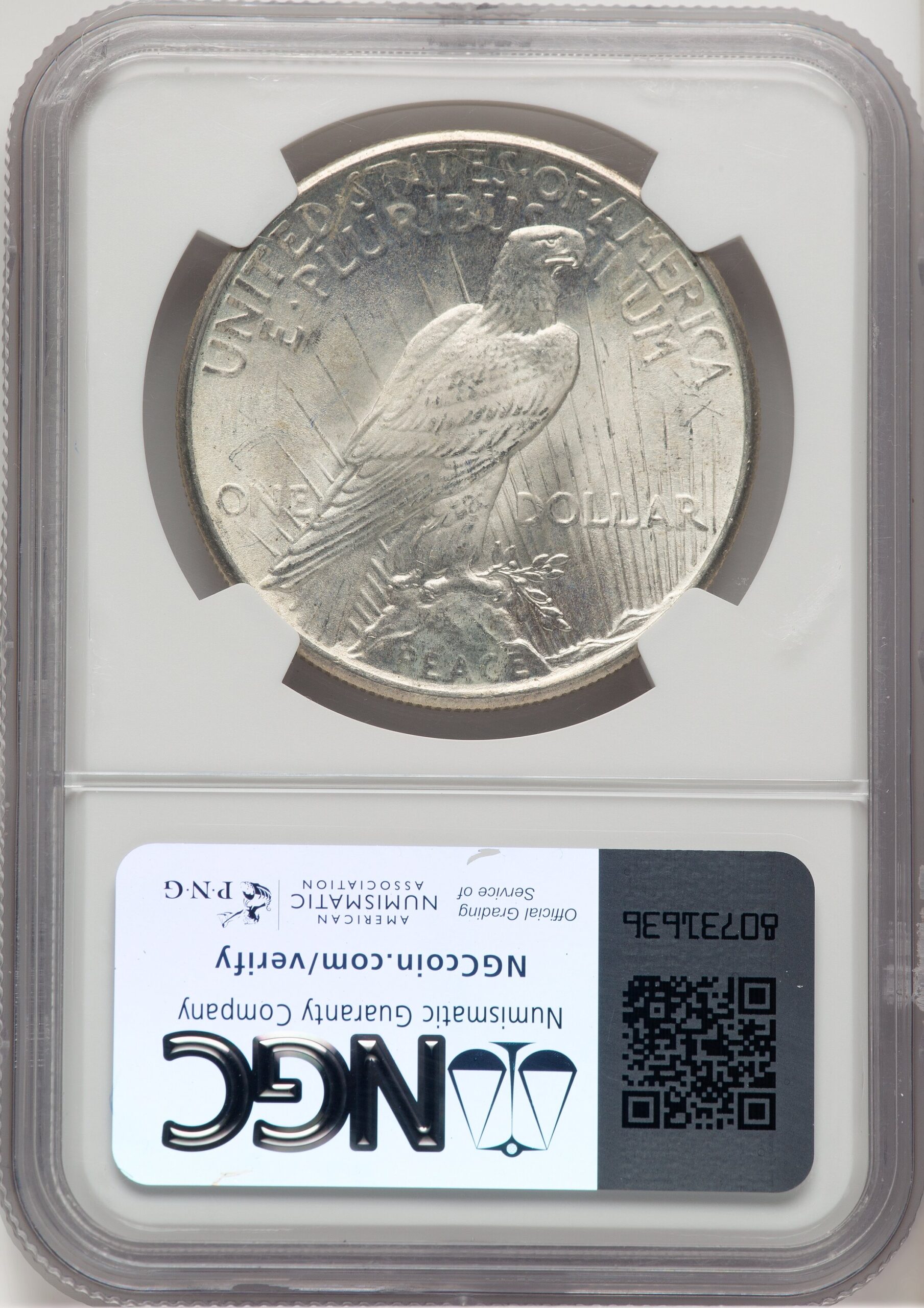 This 1925 Peace Dollar has been certified and graded by NGC as MS66+ . NGC’s encapsulation guarantees the coins MS66+ Condition.