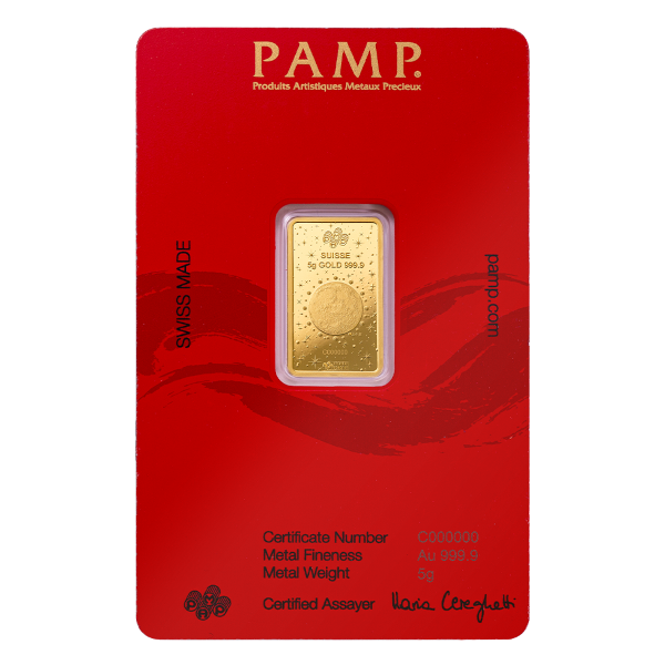 Contains 5 grams (.1607 Troy oz) of .9999 pure gold.