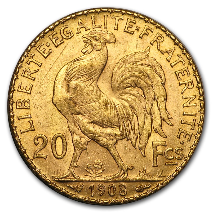 France 20 Francs Gold French Rooster Coin 1899-1914 AU