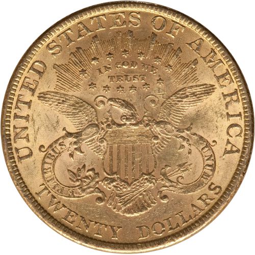 Pre-33 $20 Liberty Gold Double Eagle Coin AU Grade Coin Specifications: Denomination: $20Gold Content: 0.9675 Troy Ounce of GoldDesigner: Designer: James B. LongacreObverse: Profile of Liberty facing left, encircled by 13 stars with the word “Liberty” on her hair band.Reverse: Heraldic eagle with a shield on its breast with thirteen stars above. Surrounding the eagle is “United States of America” and the denomination.Edge Type: ReededMint/Mint Mark: Carson City (CC), Denver (D), New Orleans (O), San Francisco (S) and Philadelphia Mint (No Mint Mark).Weight: 33.436 gramsDiameter: 34.1 mmComposition: 90% gold and 10% copperBrand: U.S. Mint *The item pictured is only a representation of the item you will receive, not the exact item.